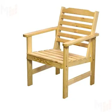 Неокрашенное садовое кресло с горизонтальной обрешеткой спинки и строгой формой подлокотников. Горизонтальное сиденье и спинка с небольшим наклоном. Подойдет для обеденной группы или релакса на природе. Станет украшением уютного уголка сада или помещения.