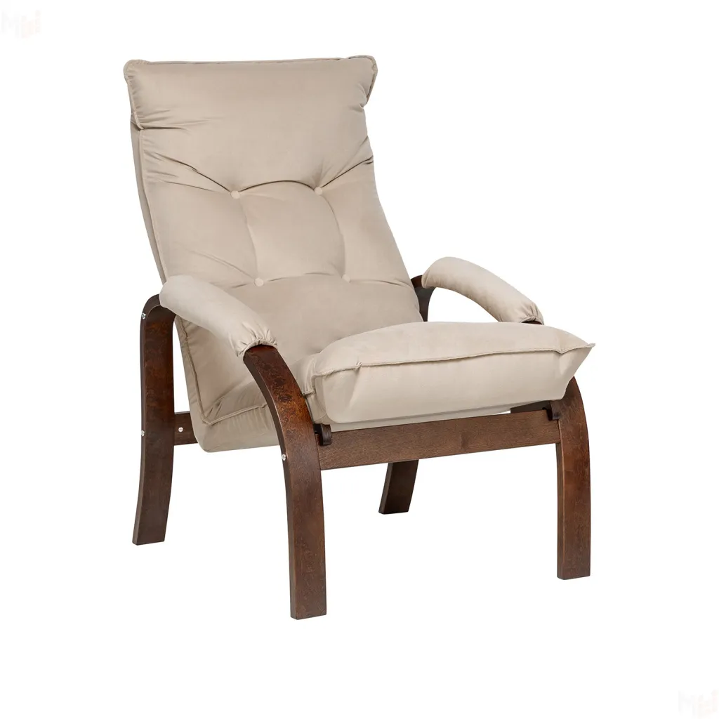Мягкое кресло для отдыха дома и на даче Левада сделает комфортным интерьер комнаты модерн или хай-тек. Стильные кресла трансформеры из гнутоклееной коллекции мягкой мебели Leset имеют характерный силуэт, функциональны и компактны, поэтому популярны. Кресло-стул с подлокотниками и уютным сиденьем уместно в спальне, гостиной, прихожей, на балконе, в закрытой дачной беседке. У основания кресло раскладное оснащено механизмом гребенка, за счет чего одним движением спинка переключается в 4 положения. Этим модель напоминает шезлонг, но Левада Leset -полноценное интерьерное кресло для отдыха: современный дизайн, изящный деревянный каркас под итальянским лаком, велюровый чехол, наполнитель из эластичного пенополиуретана. Накладки на подлокотниках снимаются для чистки, приспинная подушка декорирована пуговицами. Эргономичное каркасное кресло раскладушка выдержит до 120 кг. Регулируемое кресло позволит расслабиться как на диване, это чудесный подарок в новую квартиру друзьям.