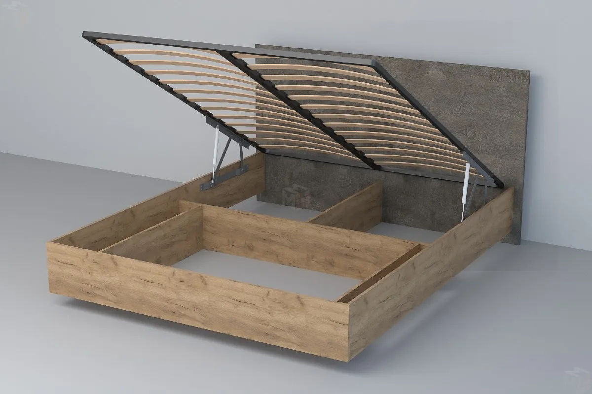 Кровать 031 Эго Дуб Крафт Золотой/Камень Темный (ЛДСП) ПМ 1600х2000