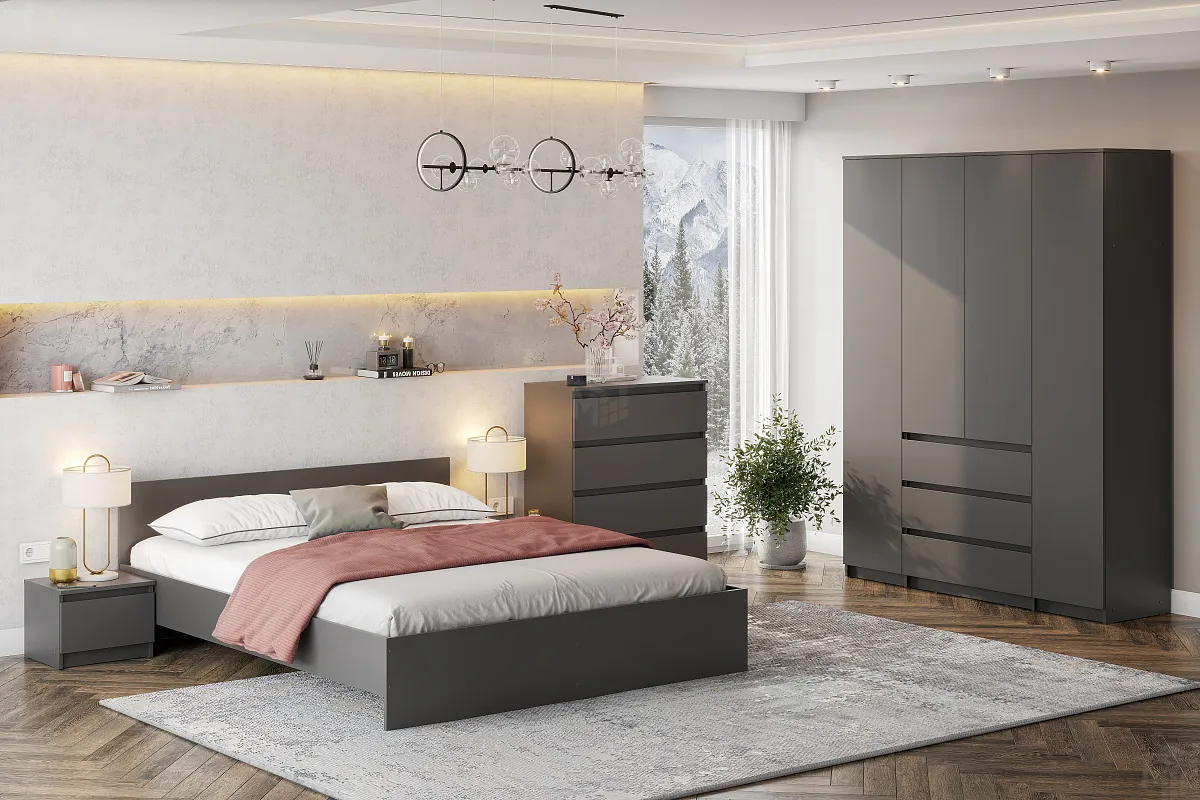 На кровать устанавливается Основание под матрас из ДСП или проложки ЛДСП (идет в комплекте).