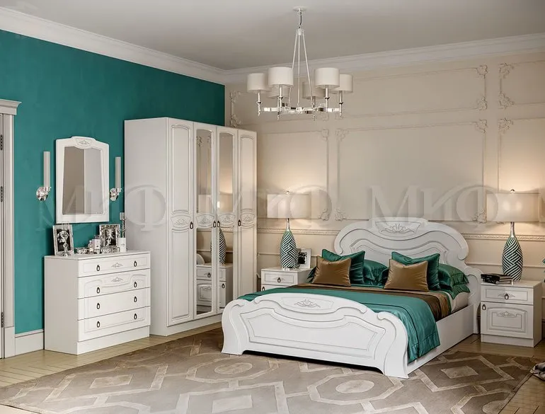 Каркас кровати из ЛДСП белого цвета, изголовья МДФ белый глянец. -