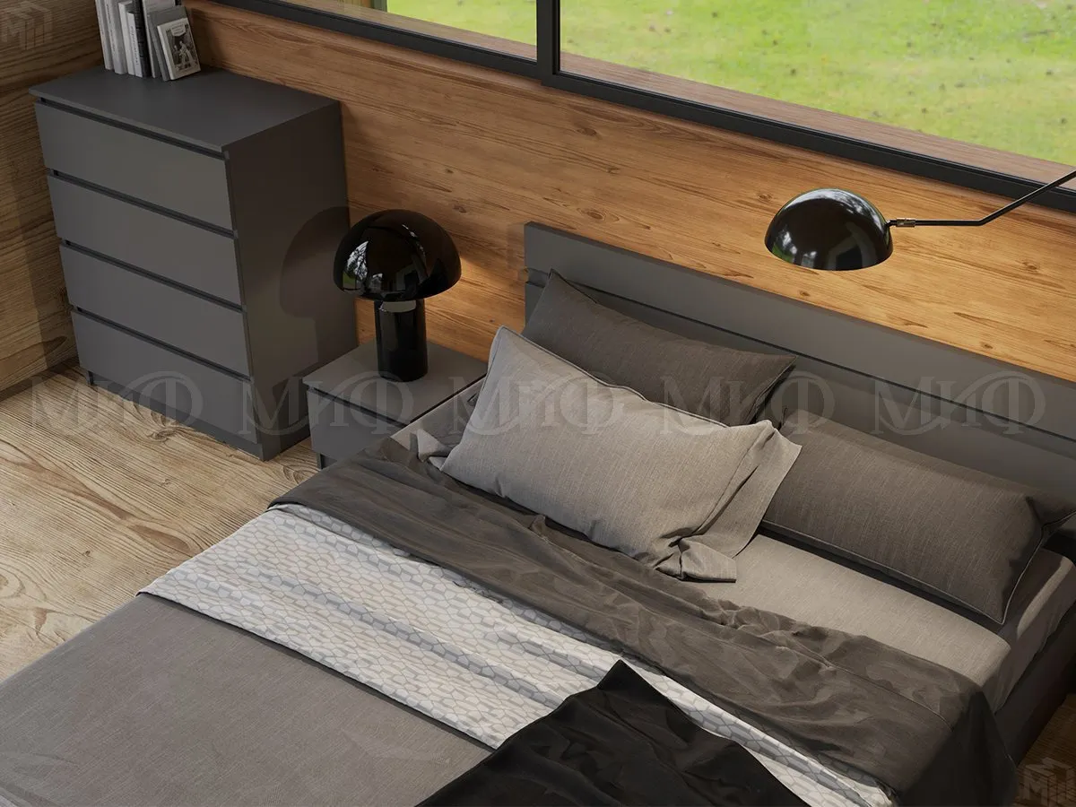 К кровати можно приобрести модули спального гарнитура Челси в едином стиле - тумбы прикроватные, комод, шкаф. -
