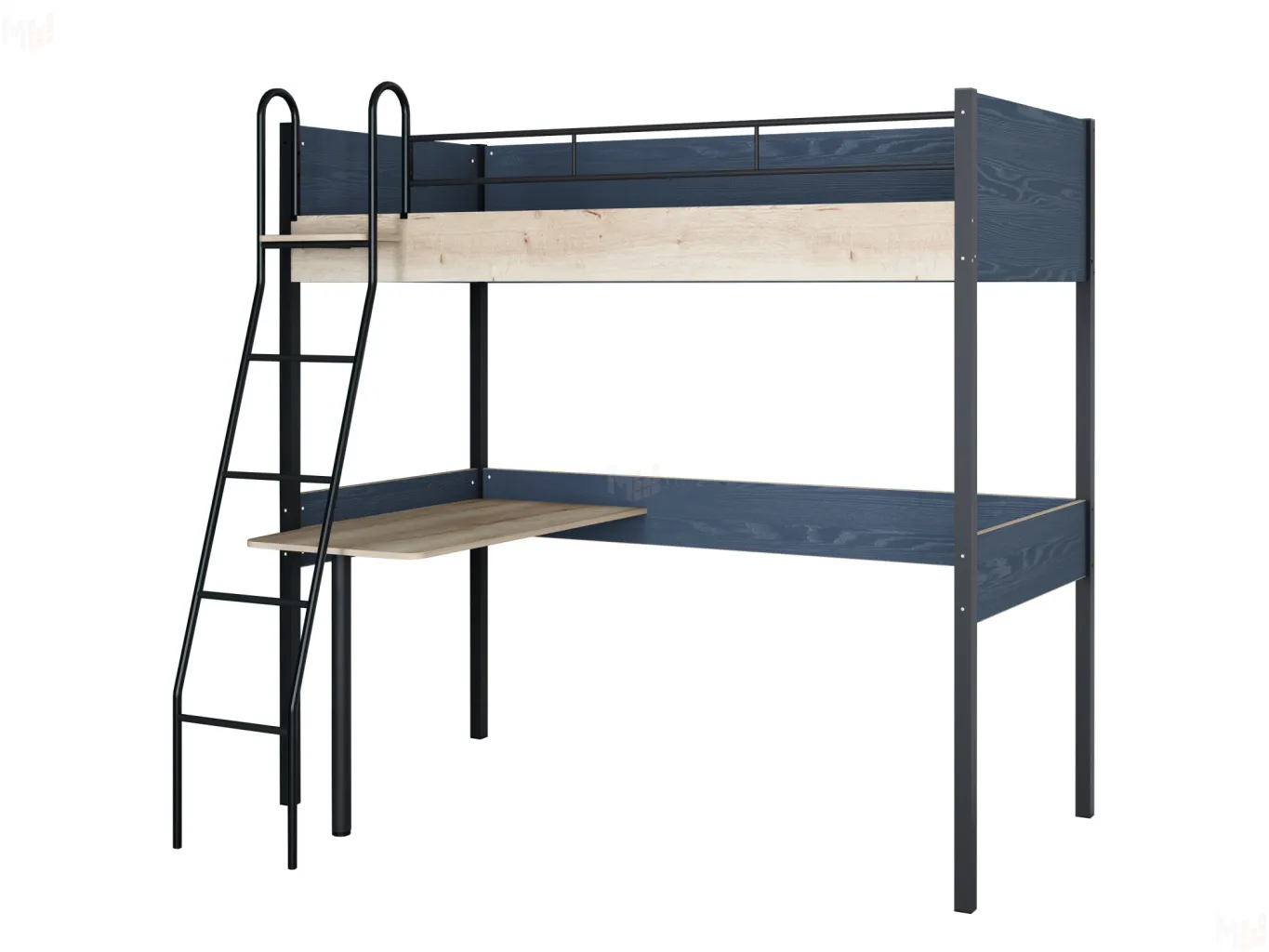 В этой серии двухъярусная кровать-чердак изготавливается в комплектации с наклонной лестницей. Таким образом, дети смогут комфортно использовать верхний ярус. На нижнем ярусе мы расположили столик, чтобы ребёнок мог заниматься своими делами в одном месте своей комнаты. Когда у вас несколько детей живут в одной комнате, вы сможете удобно организовать их рабочие места. В тоже время Вам удастся оставить больше пространства для игр в детской комнате. При этом, мы подумали о безопасности кровати и сделали жесткие крепления лестницы, чтобы кровать была более устойчивой. Также мы добавили боковины из ЛДСП, чтобы ребёнок меньше ощущал прохладный металл.