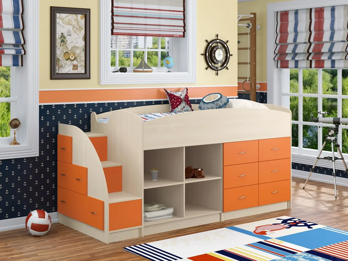 Прочная конструкция рассчитана на детей от 1 до 18 лет. Такая детская обеспечит разумную экономию пространства в вашем доме и полностью обеспечит выполнение всех многообразных функций детской и подростковой комнаты.