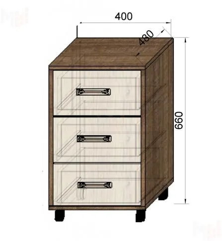 Тумба состоит из трех выдвижных шкафчиков, роликовые ножки.