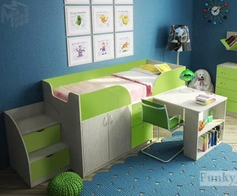 Кровать детская с выдвижным столом Фанки Кидз 10