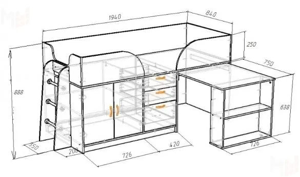 Кровать при сборке универсальная. Стол может быть с правой или с левой стороны.