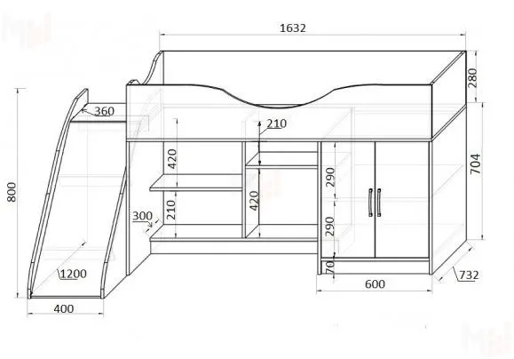 - Горка 13/18СВ в однородном цвете. Используется вместе с кроватью или отдельно стоящим модулем. Размер: 800х400х1200 мм.