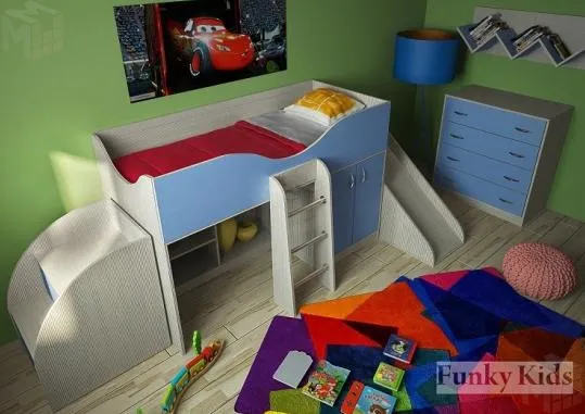 Кровать-чердак Фанки Кидз-6+лестница-комод 13/19СВ+горка 13/18СВ