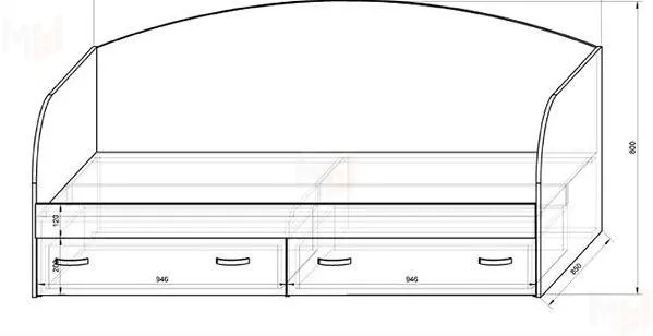 Одноярусная кровать ФУТ-13/7 дополнена двумя выкатными ящиками и имеет вид дивана с высокими боковинами и спинкой, что позволяет использовать ее и в качестве модуля для досуга.