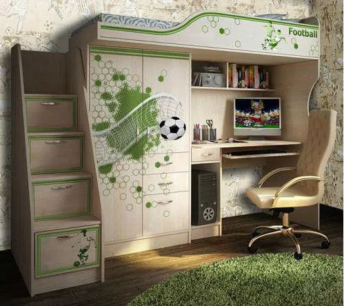 Кровать-чердак Футбол со столом и тумбой-лестницей