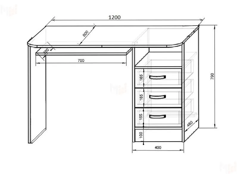 - письменный стол 13/1 с тумбочкой и выдвижной полкой под столешницей для клавиатуры.