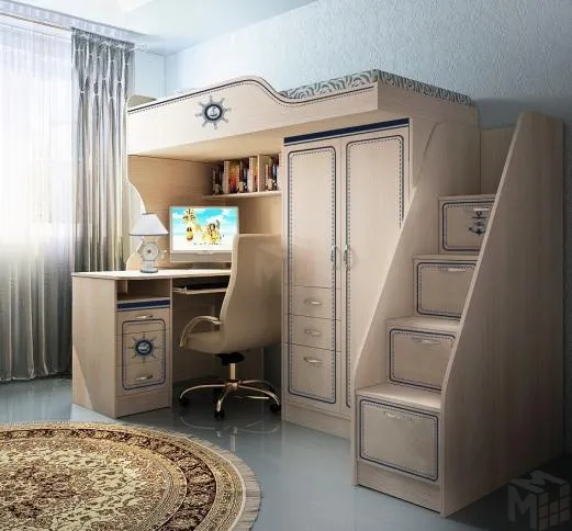 Кровать-чердак КП-4/1 + лестница КП-13/8 + стол КП-13/1 Капитан