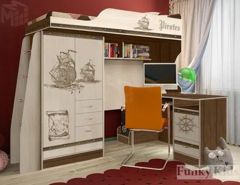 Кровать-чердак Пираты ПР-4/1 + письменный стол КП-13/1 - комплект детской и подростковой мебели.