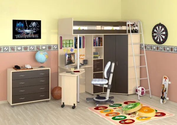 Кровать-чердак Теремок М-85 представляет собой самодостаточный комплекс включающий в себя зону для сна, шкаф и полноценный рабочий стол. Прочная конструкция рассчитана на детей от 3 до 16 лет. Такая детская обеспечит разумную экономию пространства в вашем доме и полностью обеспечит выполнение всех многообразных функций детской и подростковой комнаты.