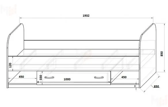 В основании модуля - лист ДВП. Внизу есть ящик выдвижной для постельного и детского белья.