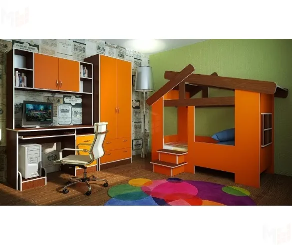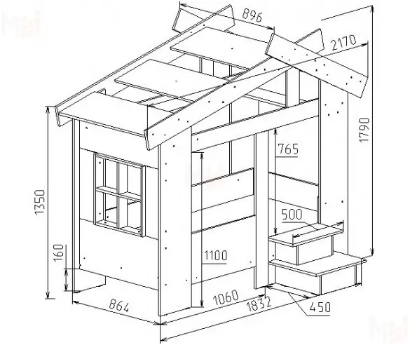 К домику приставляется невысокая горка 13/18СВ для детских игр и забав. Производится в цветах: ольха, орех, венге, сосна лоредо и дуб молочный. Размер: 800х400х1200 мм.