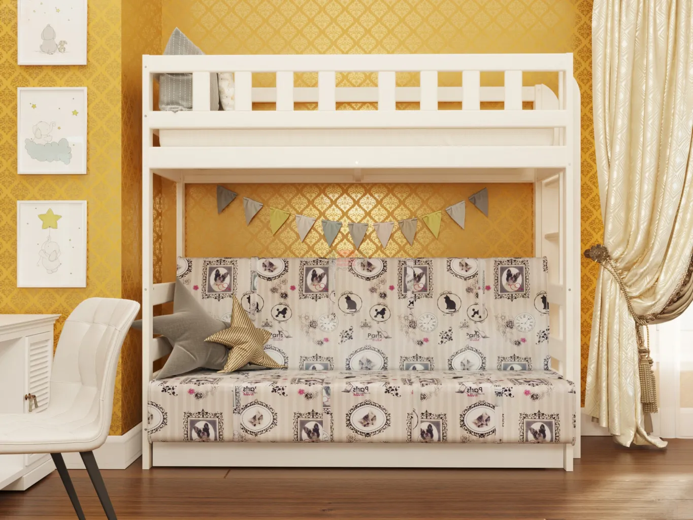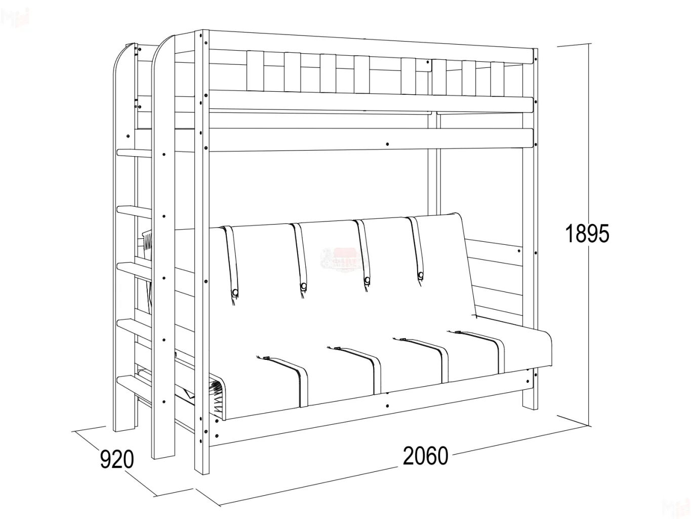 Размер верхнего спального места 80*190 см, матрас приобретается дополнительно. Размер нижнего спального места 110*190 см.