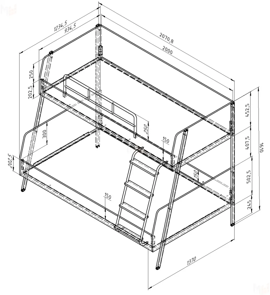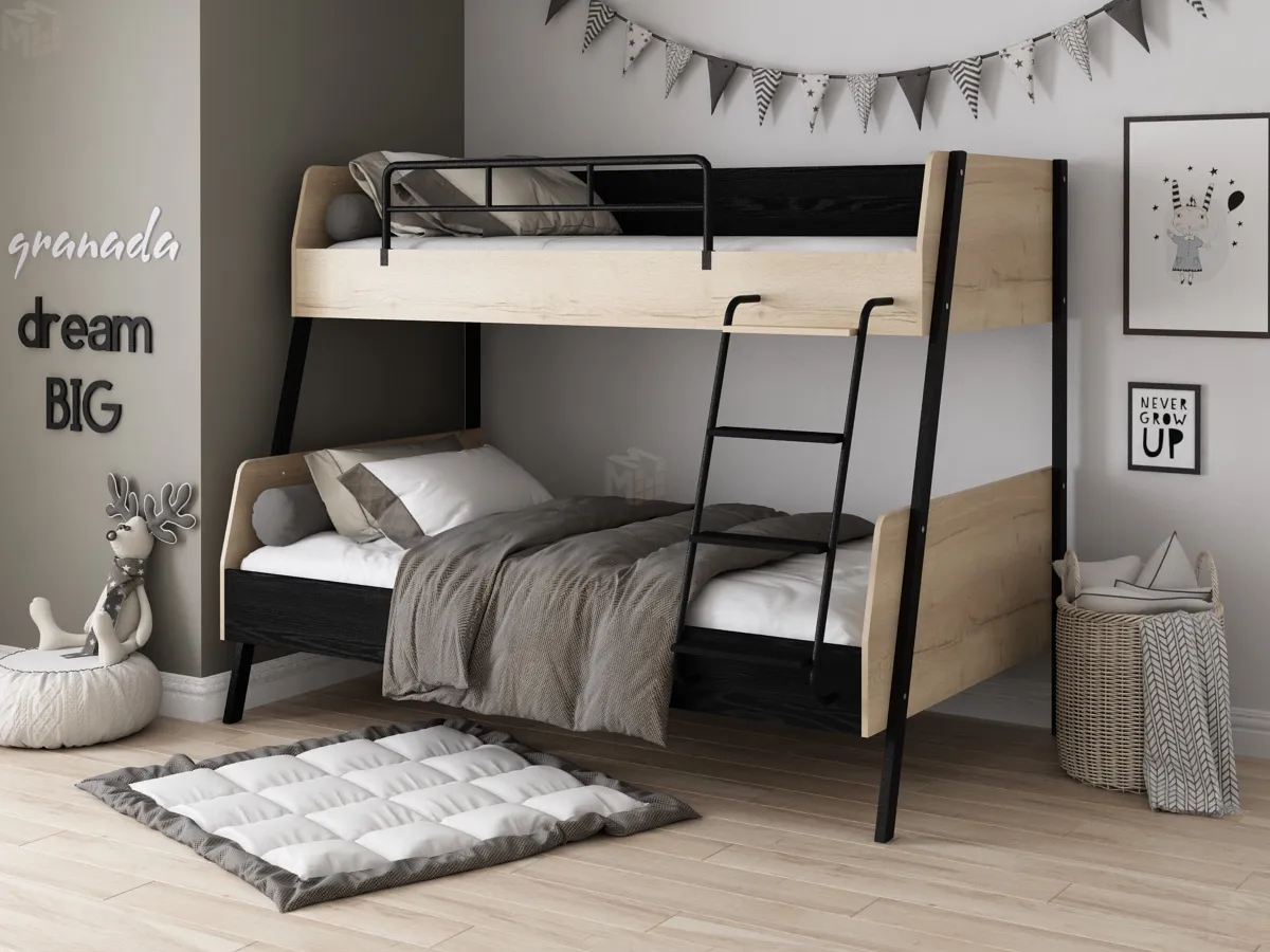 Размеры спального места - верхнее 90х200 см, нижнее 120х200 см.