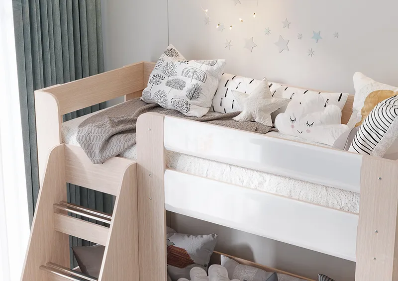Кровать двухъярусная Симба дуб белфорт - белый глянец