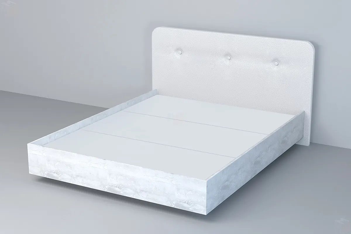 Кровать 031 Эго Бетон Светлый/Белый Глянец (Пуговицы) ЛН 1400х2000