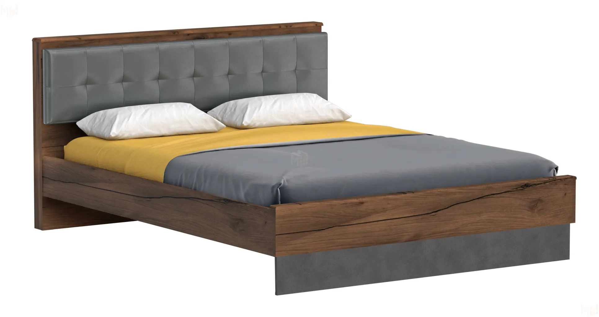 Материалы: ЛДСП, МДФ, экокожа.Цена на кровать указана без стоимости матраса и ортопедического основания. Кровать может комплектоваться ортопедическим основанием на 5 опорах или бельевым ящиком с подъемным механизмом. На фото в интерьере кровать представлена с бельевым ящиком