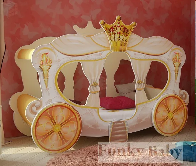 Детская кровать в виде кареты предназначена для детей от 2-х лет. Кровать выполнена в нежных пастельных тонах (розовая или кремовая - на Ваш выбор).