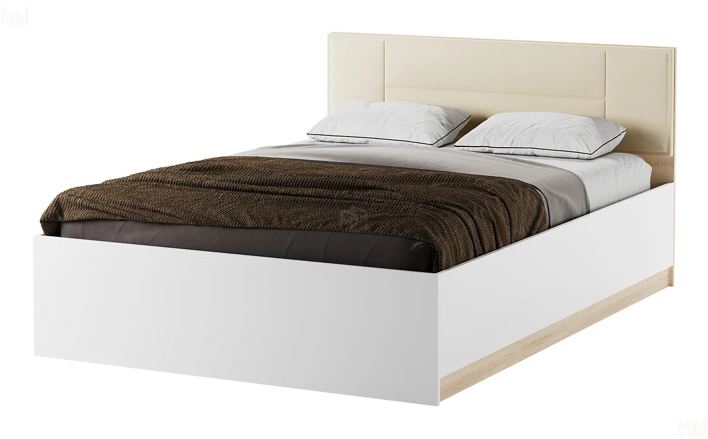 Кровать КР-1600 Беатрис с ПМ дуб Сонома-Белый глянец