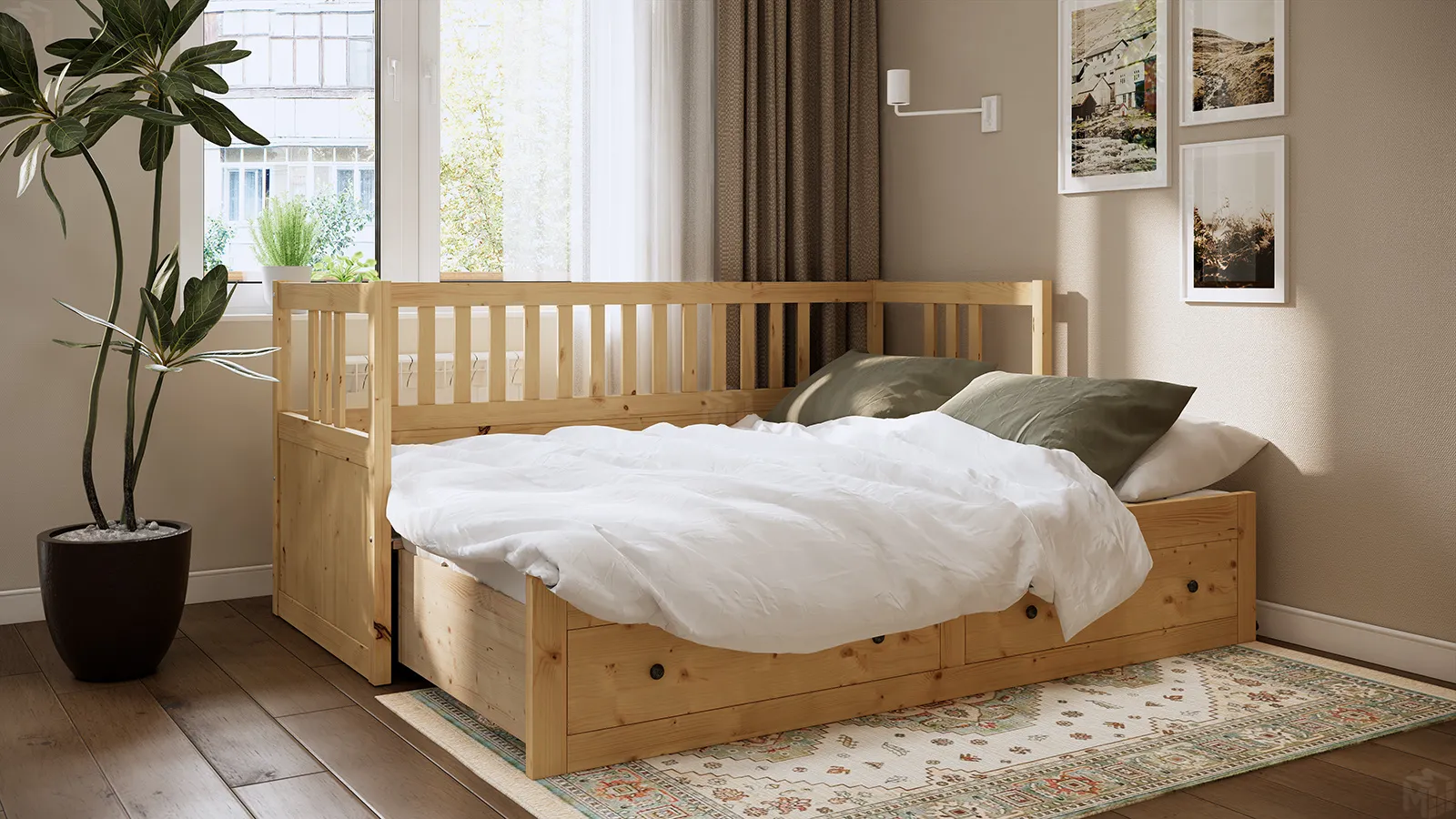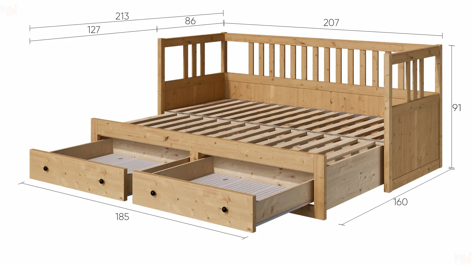 Особенностью данной модели является раздвижная конструкция, которая позволяет увеличить спальное место на 80 см. Это особенно актуально для семей с детьми, так как позволяет легко трансформировать кровать в просторное спальное место для двоих.