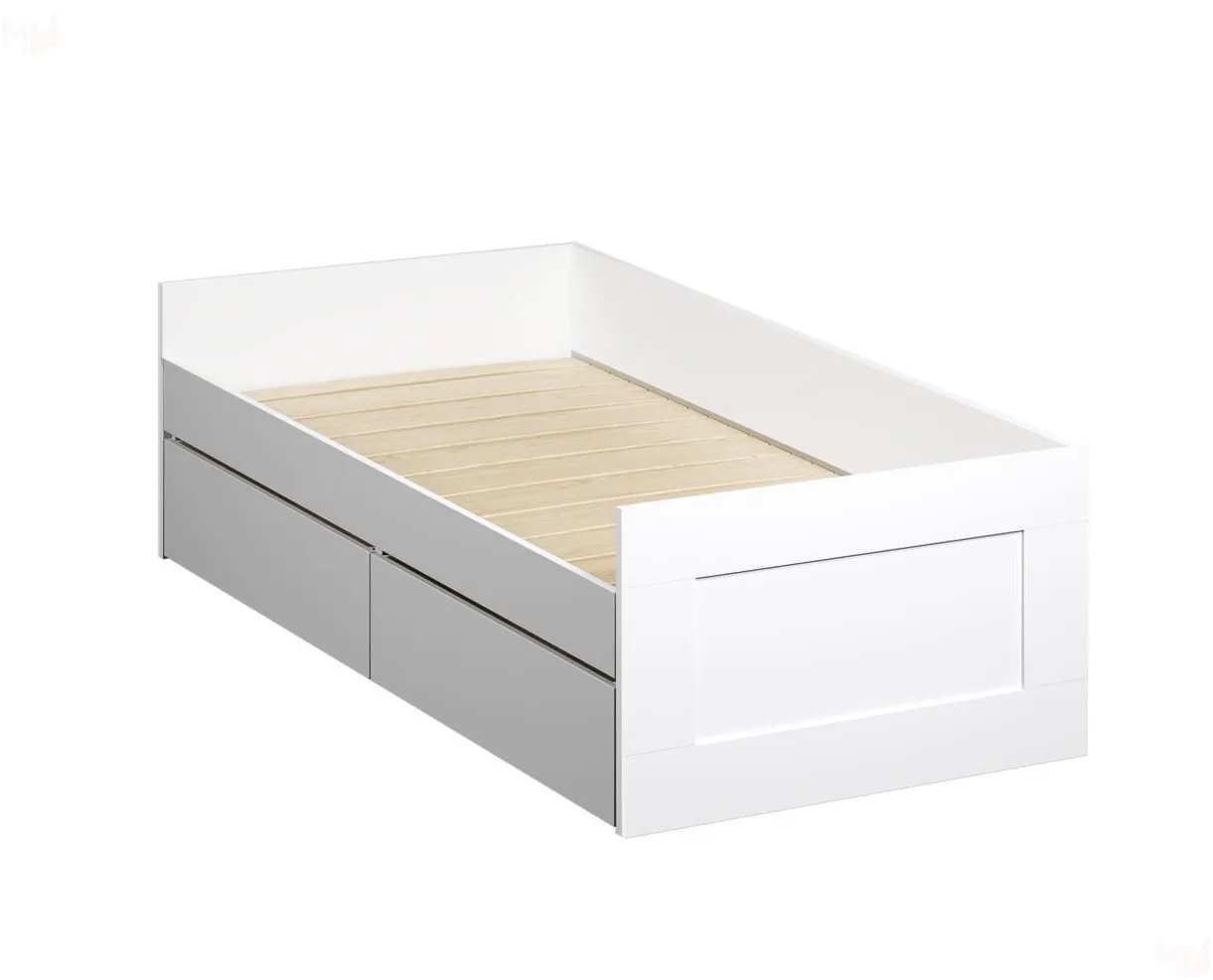Днем на кушетке удобно сидеть, а ночью она легко превратится в односпальную или двуспальную кровать. В двух вместительных ящиках можно хранить одеяла, подушки и постельное белье. Отличное решение, особенно, если в комнате немного места.