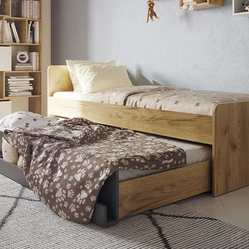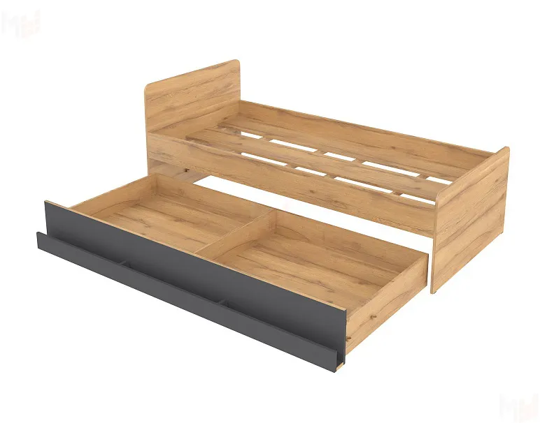 Выдвижной ящик используйте как место для хранения или как дополнительное спальное место. Если планируется дополнительное полноценное спальное место, достаточно не устанавливать делитель при сборке и приобрести матрас. Рекомендуемый размер матраса для основного спального места - 2000х900 мм, для дополнительного спального места - 1900х800х180 мм.