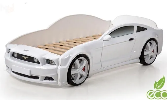 Кроватка машинка Мустанг 3D с самым реалистичным дизайном. Подарите Вашему ребенку мечту – кровать-машину. Каркас кровати выполнен из ЛДСП, который скрыт под формованным объемным пластиком. Наклейки в виде фар и окон для устойчивости к истиранию покрыты матовой ламинацией. Кровать комплектуется ортопедическим основанием на ламелях, которое обеспечивает формирование правильной осанки и полноценный отдых ребенка во время сна.