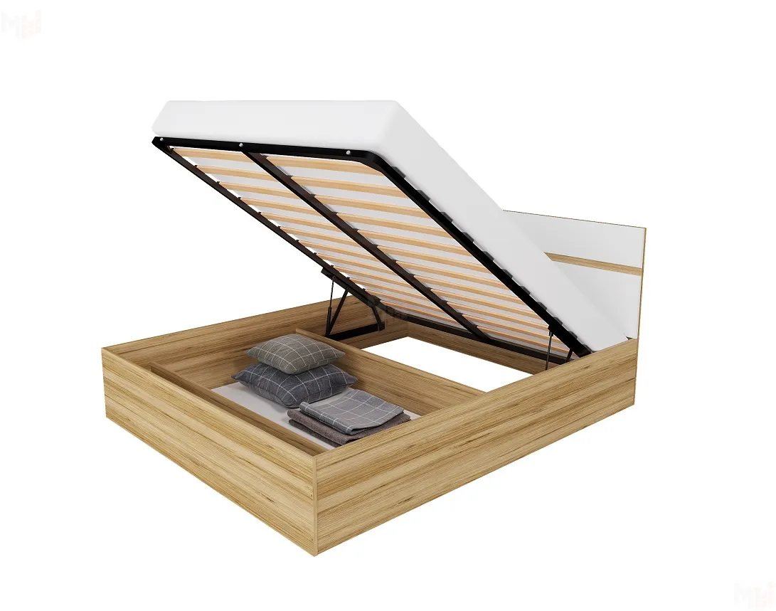 Кровать Ненси 1,6 с подъемным механизмом (дуб золотой/белый глянец)