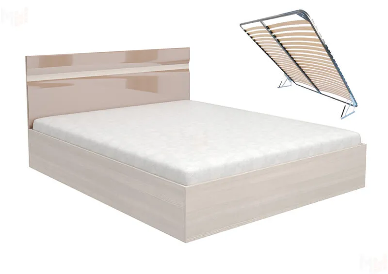 Кровать Ненси 1,6 с подъемным механизмом (ясень/капучино глянец)