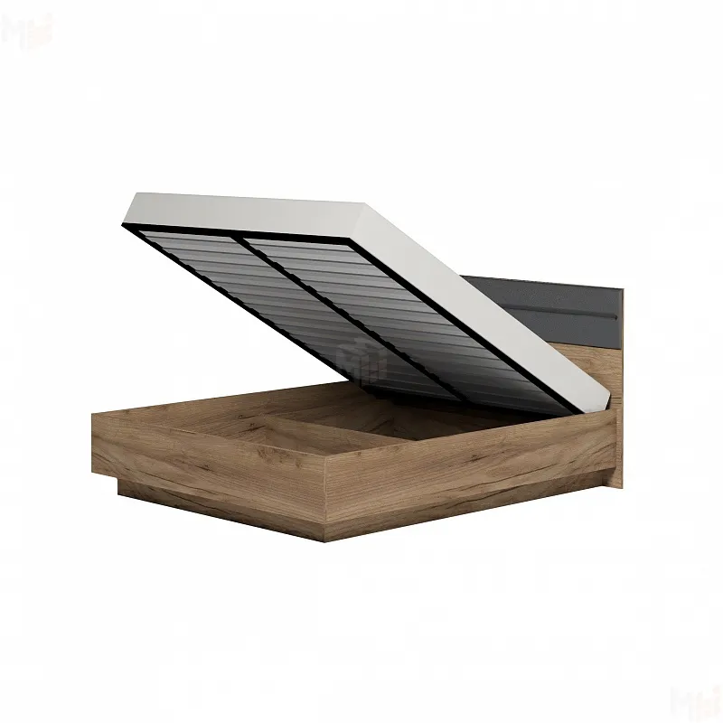 Кровать визуально «парит» над полом, одновременно сохраняя устойчивость конструкции. Подъемное основание идет в комплекте.