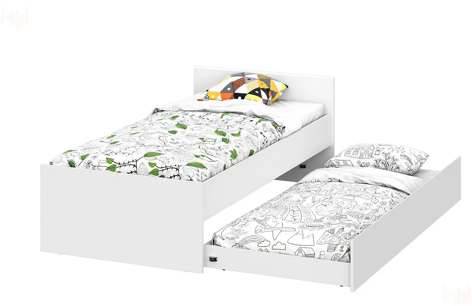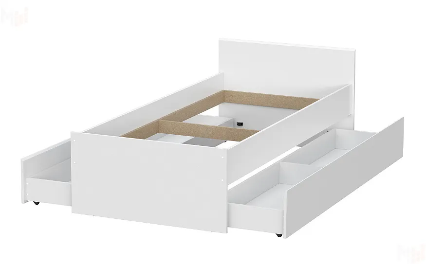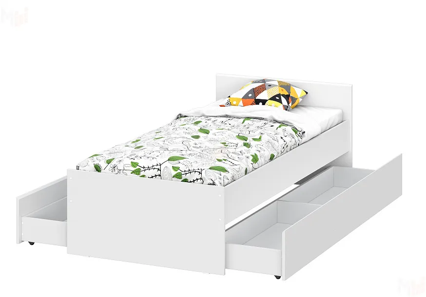 Кровать одинарная с выкатными ящиками (0,9 x 2,0) Токио Белый текстурный
