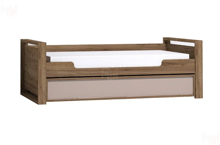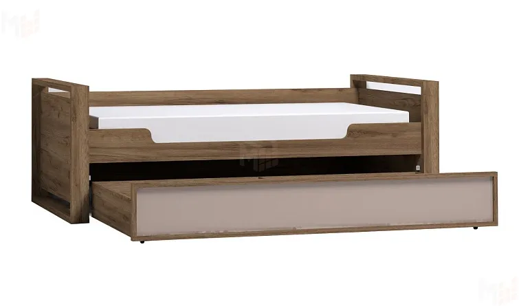 Детская или подростковая кровать-тахта с большим ящиком глубиной 182 мм на выкатных роликах. Его можно использовать как место для хранения постельного белья или как дополнительное спальное место для незапланированных гостей. Для полноценного спального места достаточно убрать разделитель и положить матрас. Размер матраса для основного спального места 190х90 см. Размер матраса для дополнительного спального места: 190х80 см, высотой до 18 см. Дополнительные боковые ниши в кровати помогут подростку держать под рукой необходимые перед сном вещи. Бонусом для современных детей станет компактная встроенная в кровать USB зарядка для телефонов и планшетов.
