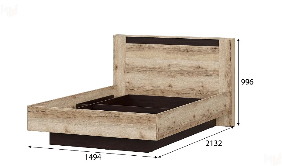 Кровать имеет «парящую» конструкцию с двумя вместительными бельевыми ящиками размером 1068 х 300 х 903 мм.