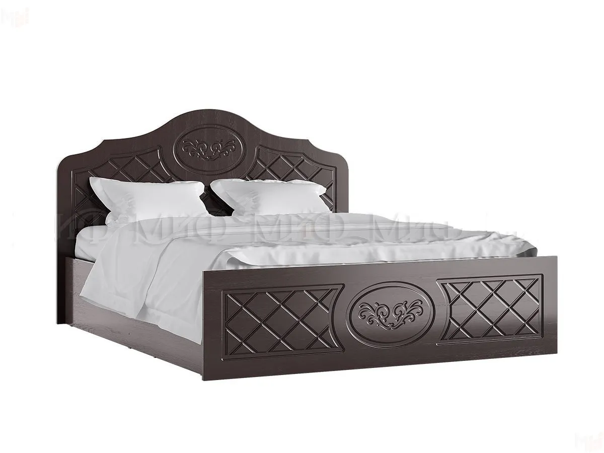 Каркас кровати выполнен из ЛДСП Дуб венге, спинка и изножье МДФ Шоколад с 3Д фрезеровкой.