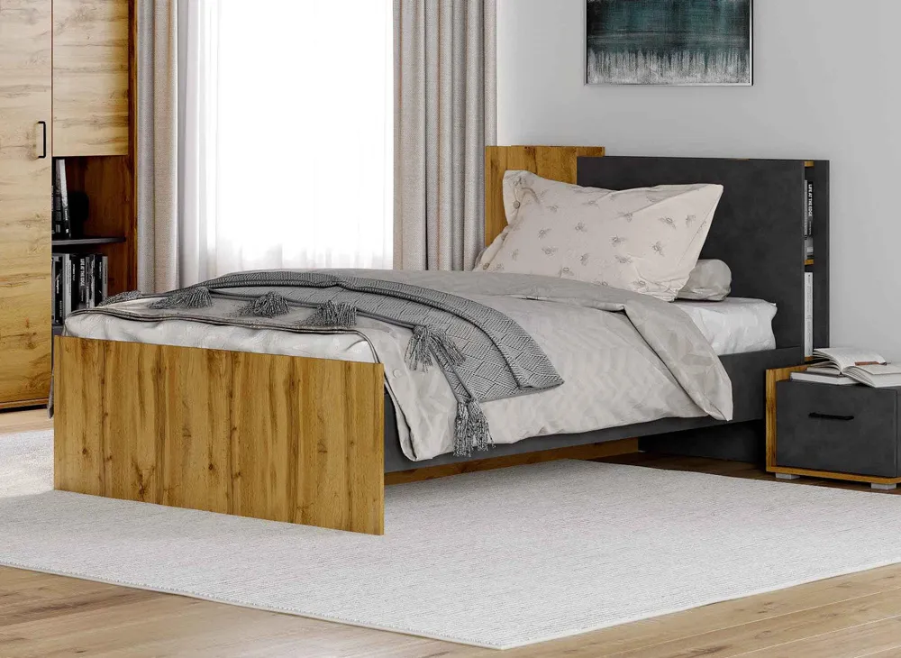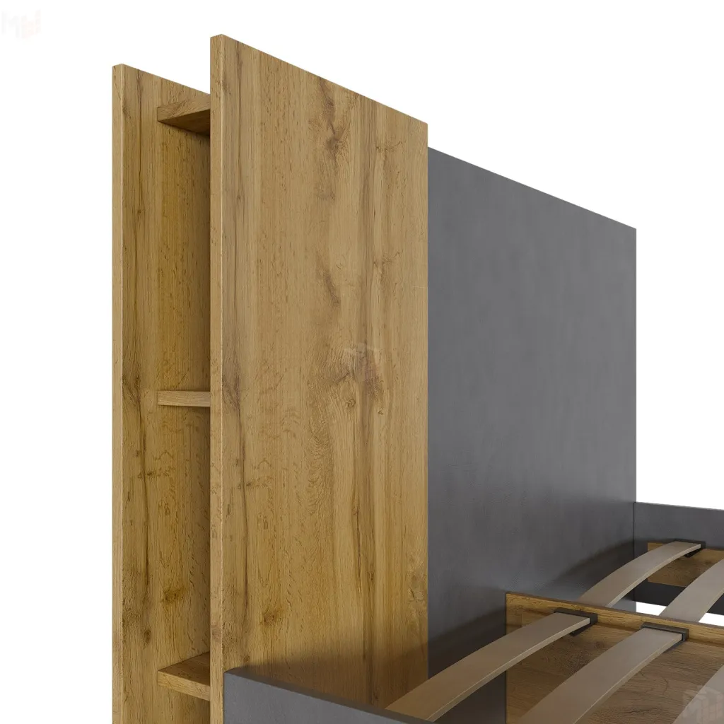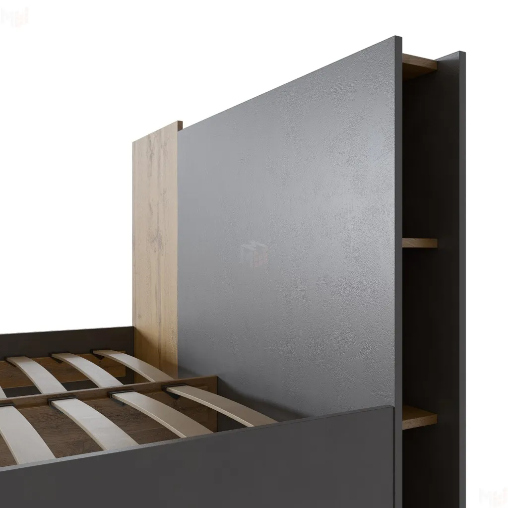 Изголовье кровати изготавливается ТОЛЬКО в следующей раскладке: слева — Дуб вотан, справа — Металл бруклин -