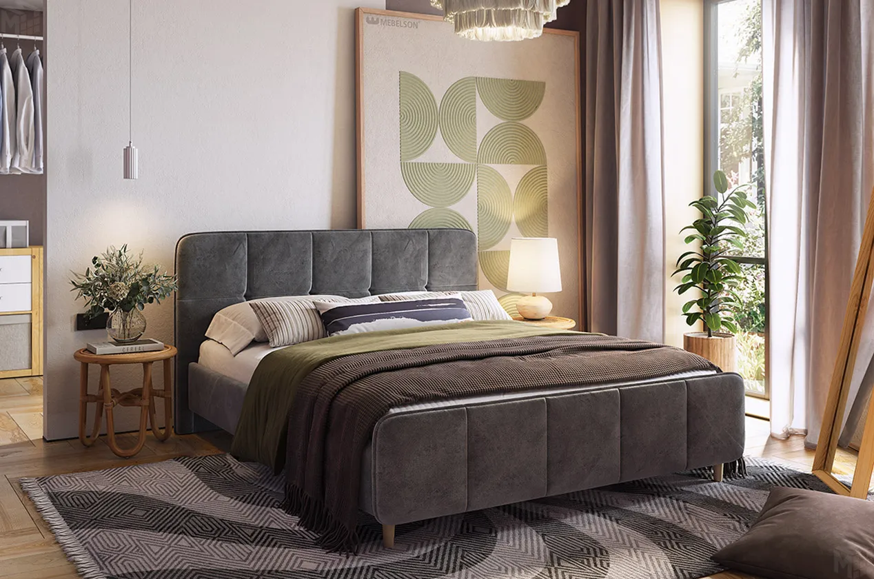 Кровать с основанием Грета 160х200 см грей алькантара