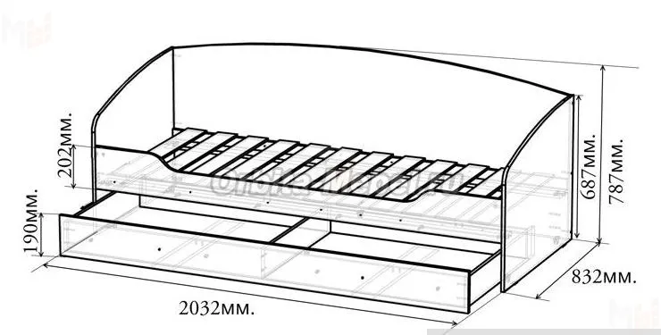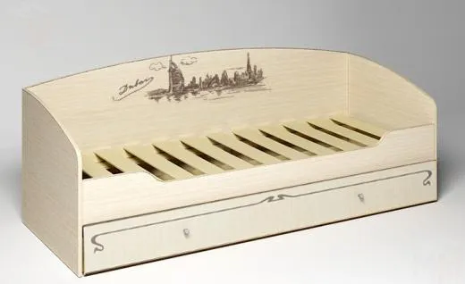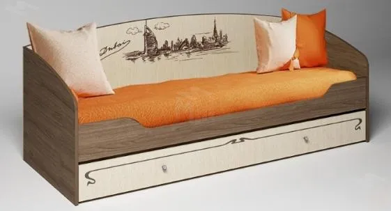Кровать в виде диванчика. Размер спального места 2000х800 мм. Кровать имеет вместительный ящик на колесиках.