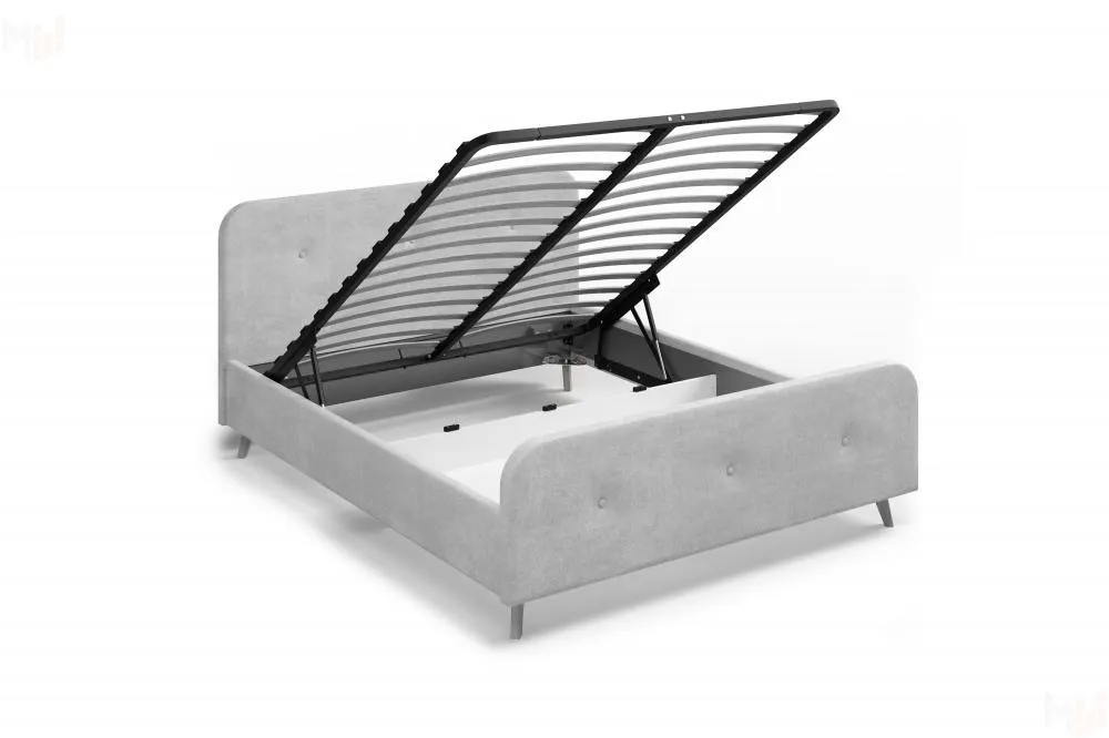 Изголовье имеет закругленный силуэт, обтянут велюровой тканью с пуговицами, что обеспечивает дополнительную мягкость и уют. Высокие стильные ножки из массива березы создадут ощущение легкости и воздушности.