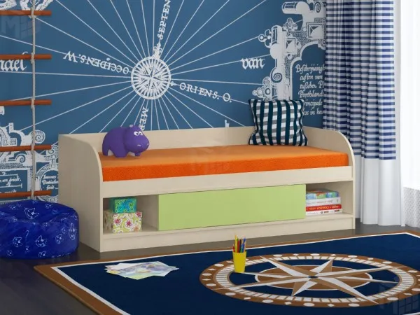 Кровать представляет собой удобное спальное место, подходящее для ребенка от 1,5 до 10 лет. Для маленьких детей можно дополнительно поставить бортик.Данная модель имеет вместительный выдвижной ящик и ниши, которые прекрасно подойдут для хранения игрушек и постельного белья. Лаконичный дизайн сделает кровать неотъемлемой частью уютного интерьера спального помещения.