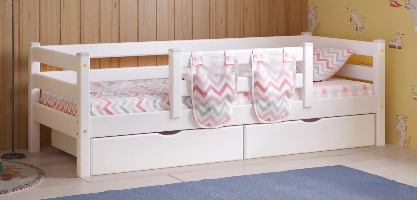Вариант 4 Кровать «Соня» с защитой по центру — один из примеров идеального сочетания практичности, оригинальности и долговечности. Цветовое исполнение подходит сразу для нескольких стилей, а габариты — для комнат разной площади.