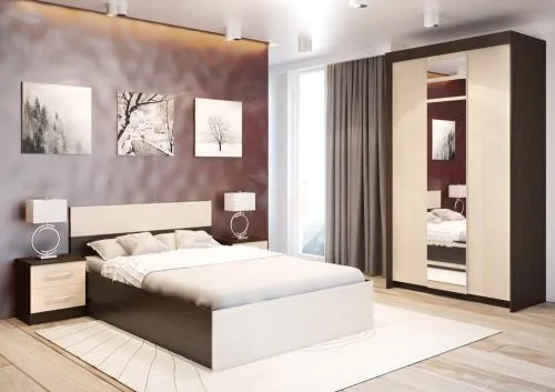 Кровать выполнена из ЛДСП. В стоимость входит основание под матрас - лист ДСП. Размер спального места 140*200 см. Матрас не входит в стоимость.