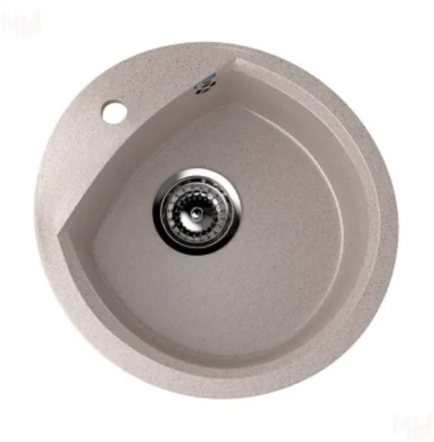 Круглая мойка из искусственного камня. Модель Ulgran U-407. Отличная мойка, которая позволит оптимально разместить как круглые, так и прямоугольные или квадратные тарелки. Обусловлено это наличием прямой стенки со стороны отверстия для смесителя, благодаря которой тарелки и предметы с прямым краем будут прилегать вплотную к краю мойки, исключая тем самым ненужные пустые полости. Рациональная эргономика является одной из важных особенностей модели Ulgran U-407.