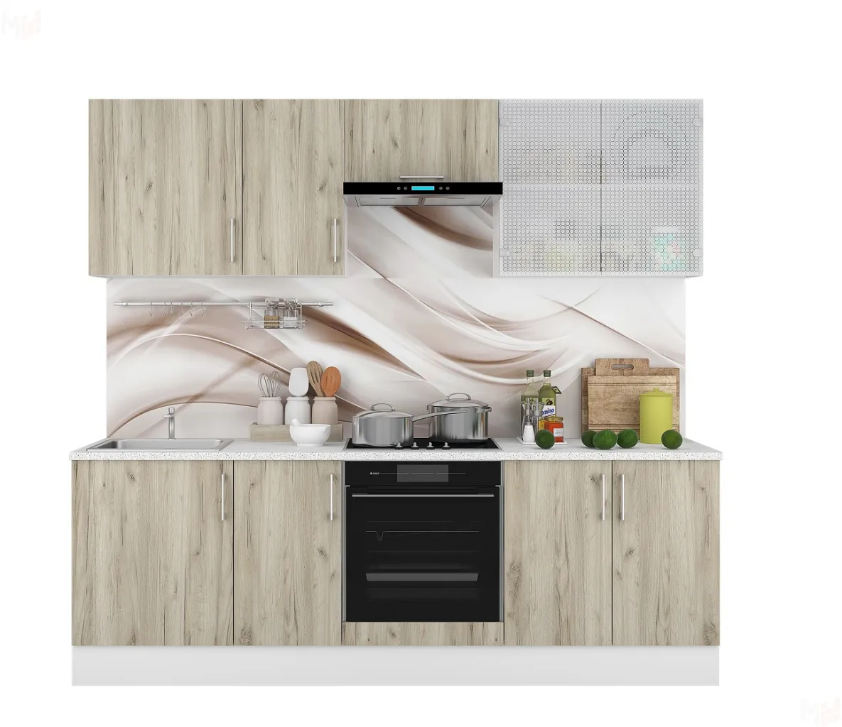 Мойка, стеновая панель и вытяжка приобретаются дополнительно. -