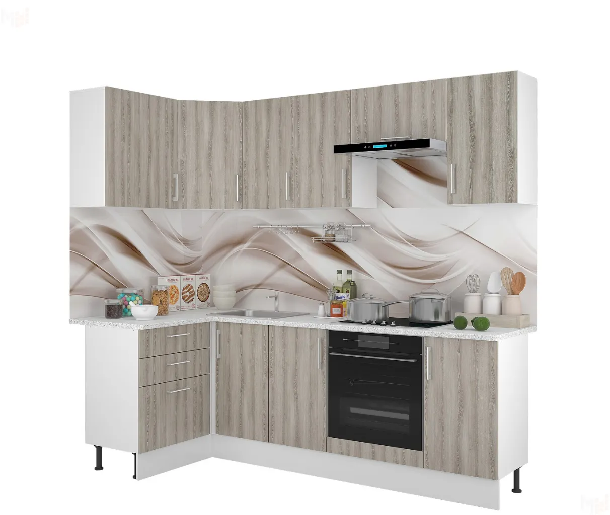 Кухня Рио New угловая 2,6*1,0 м (490) Бетон темный/бетон светлый, Белый (Антарес)