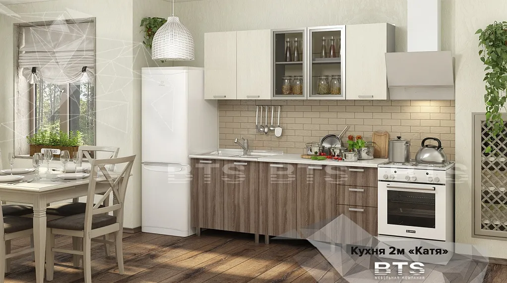 Теплые тона древесного декора фасадов цвета ясень шимо темный и дуб атланта помогут создать эко-стиль у Вас дома! Фасады кухни дополнены уникальным рисунком, нанесенным при помощи фотопечати. Это создает необычное оформление, которое хочется рассматривать снова и снова. А обработка створок лаком увеличивает срок службы кухни. По желанию можно доукомплектовать кухню модулями на 600 мм: хлебницей и шкафом для встраиваемой техники